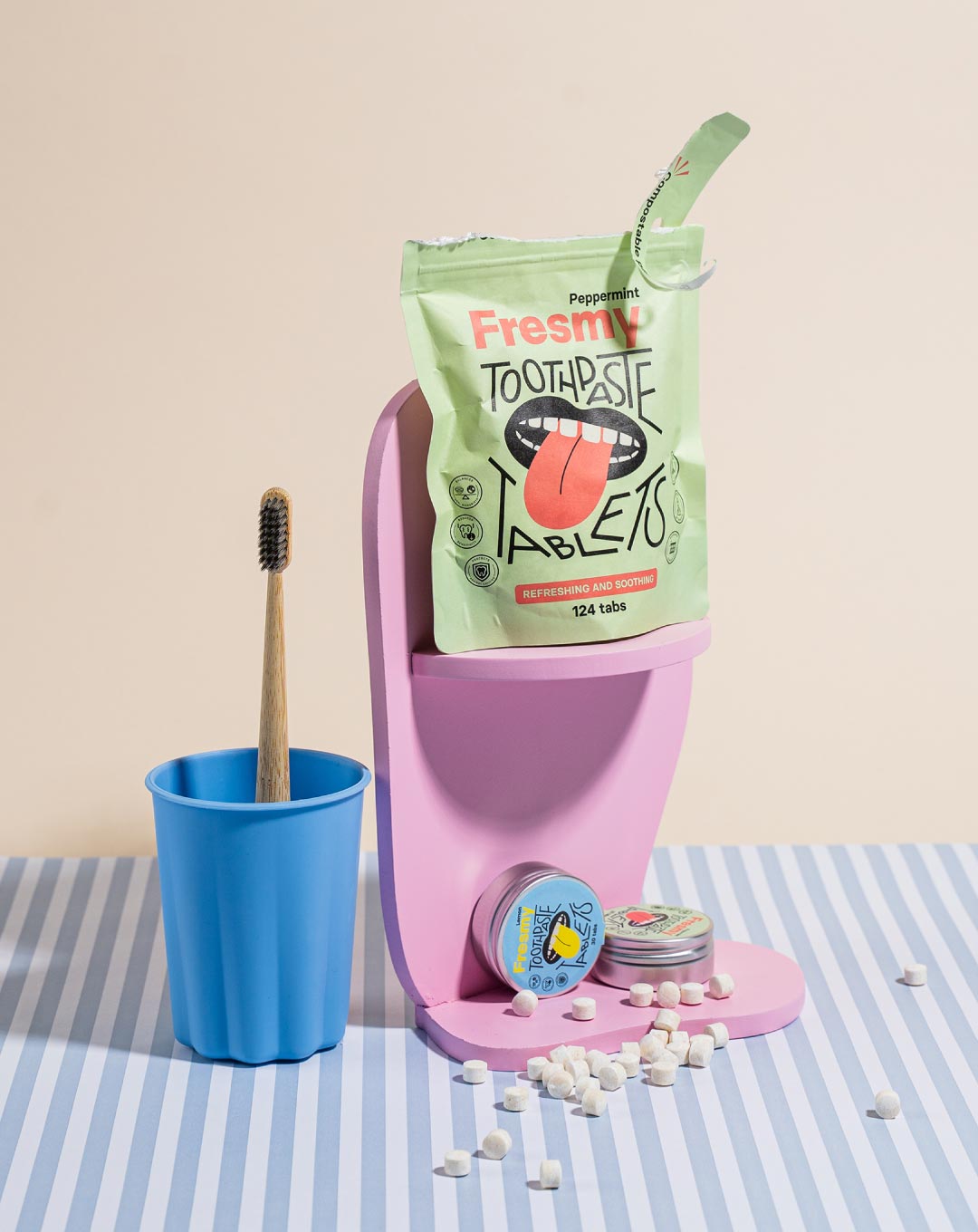 Fresmy toothpaste and mouthwash tablets contain clean ingredients that support your oral health: